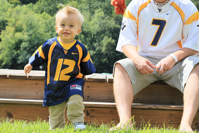 Not really sure where to start with updates on little man, but I will tell you this...he is a little man with a big attitude!!! Yes, he's still Mommy's perfect little angel, but has come to know the word NO a little to well. He amazes me how much he is learning everyday. Another word we here a lot around the house is huh? More times then not...when you say something to E...doesn't matter what it is...his response is huh?