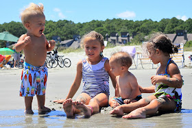 I know I know...it's been a while...a long while. A lot going on so the blog has been put on the back burner. Plus home computer doesn't do much of anything, but make me very upset! For the months that I haven't posted anything...at least I have been taking pictures. I wasn't sure which ones I should share first because I have some good ones that were taken before the beach trip...but I couldn't resist. I just HAD to share some pics of my hunk at the beach. E had a blast...as we anticipated. He absolutely loved the sand...the waves...and oh yeah...the ladies. What a chip off the old block!!! (LOL) I have witnesses...E would walk around the beach going from girl to girl just-a-flirtin it up! Now...that's ok for now...doesn't bother Moma too much, but that's got to stop pretty soon. I can't be given my little man away to some girl for about another 50 years...yeah right...who am I kidding...I wish!!!